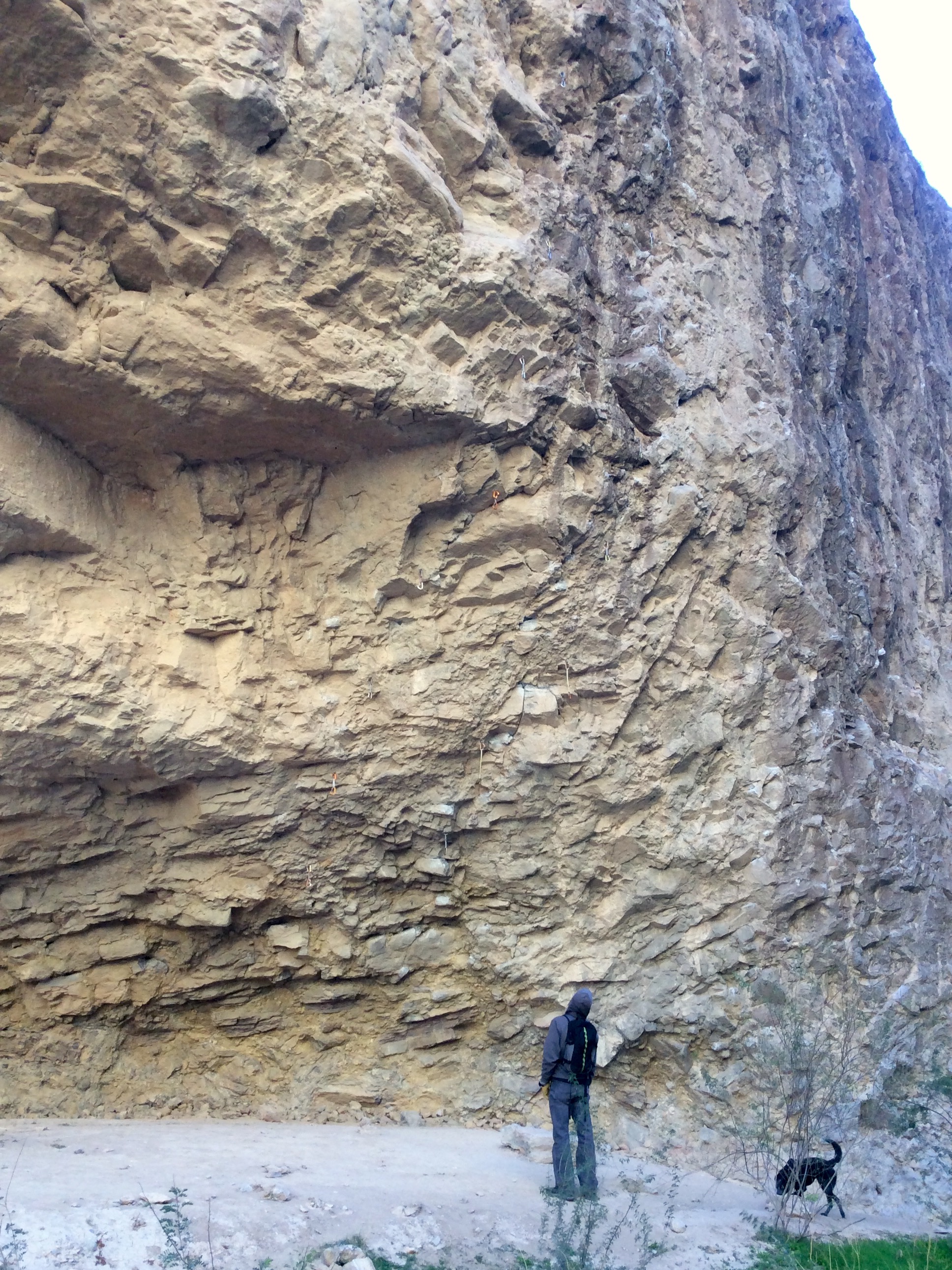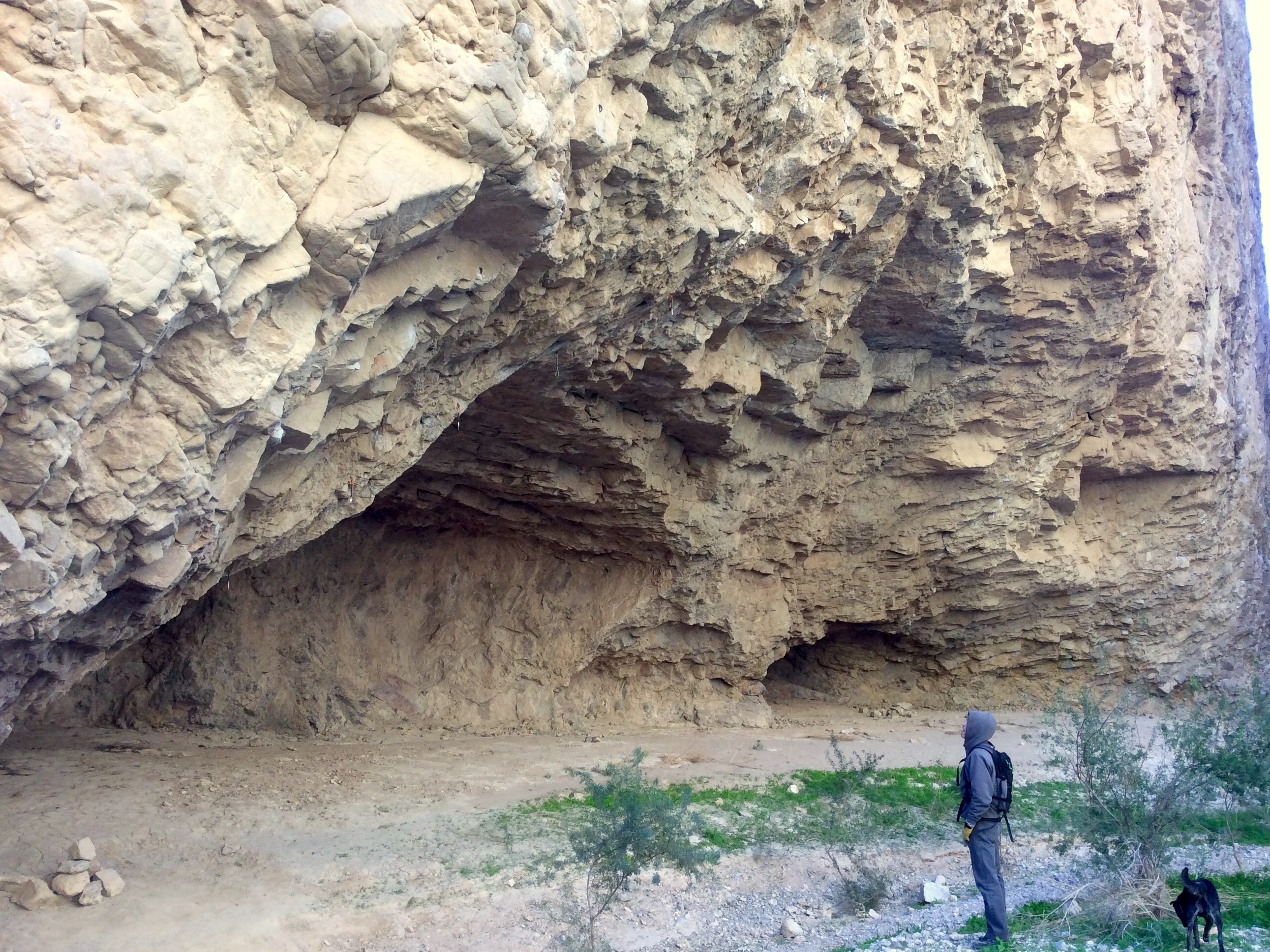 It’s cold. In case you’re somewhere else, thinking about how great it would be to be in St. George right now, you can relax. It’s cold, so cold that we’ve coiled the ropes and taken the cue to start our bouldering season. But first, we drove down to Moapa to check out the rumors that it would be warmer and less windy in Arrow Canyon due to the lower elevation and sheltering narrow corridor (which was a veritable wind tunnel on the day we were there). Plus, we’re lazy and have a habit of scoping out new areas in lightweight mode before we make an actual effort and lug all our gear in. We had to park about 3-tenths of a mile short of the BLM gate access point and walk because the rest of the road was undrivable for the Element. It was what we would call a long hike (about an hour), but not out of the question.