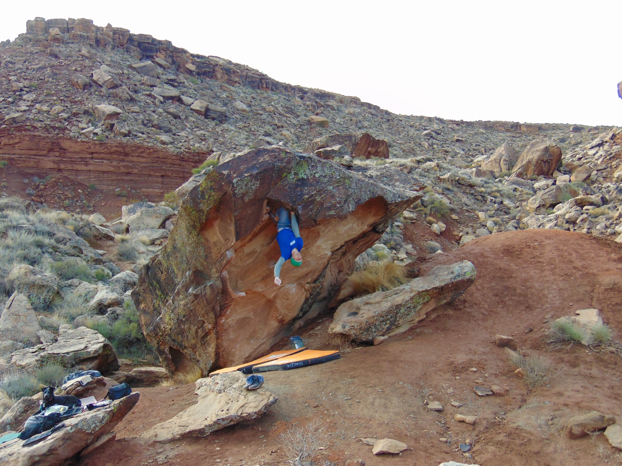 Here in Moe’s Valley, we’re currently fighting some relatively tough conditions. The fragile indigenous sandstone suffers after a soaking. After the first light rain, we can manage the damp hike in to find dry problems on the steeper, sheltered stuff, but the options are limited. We really have to wait until it becomes dry. Plus, the colder then normal temps make it difficult to warm-up for steep power movement.