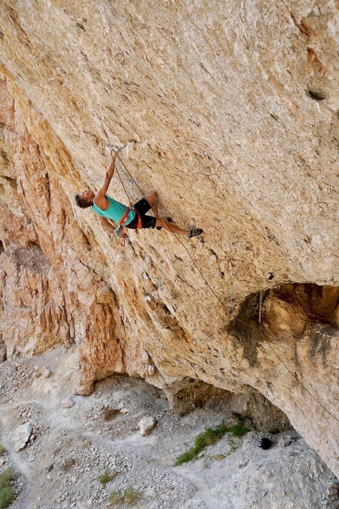 I tried to take advantage of my lighter, albeit somewhat weaker, physique as I slowly worked my way into fitness for the powerfully steep Octagon lines. Progress was slow, but sure. Just as things were starting to click, all hell broke loose. My left hand blew off of a small gaston crimp and I plummeted 20′ downward in a spiraling trajectory.