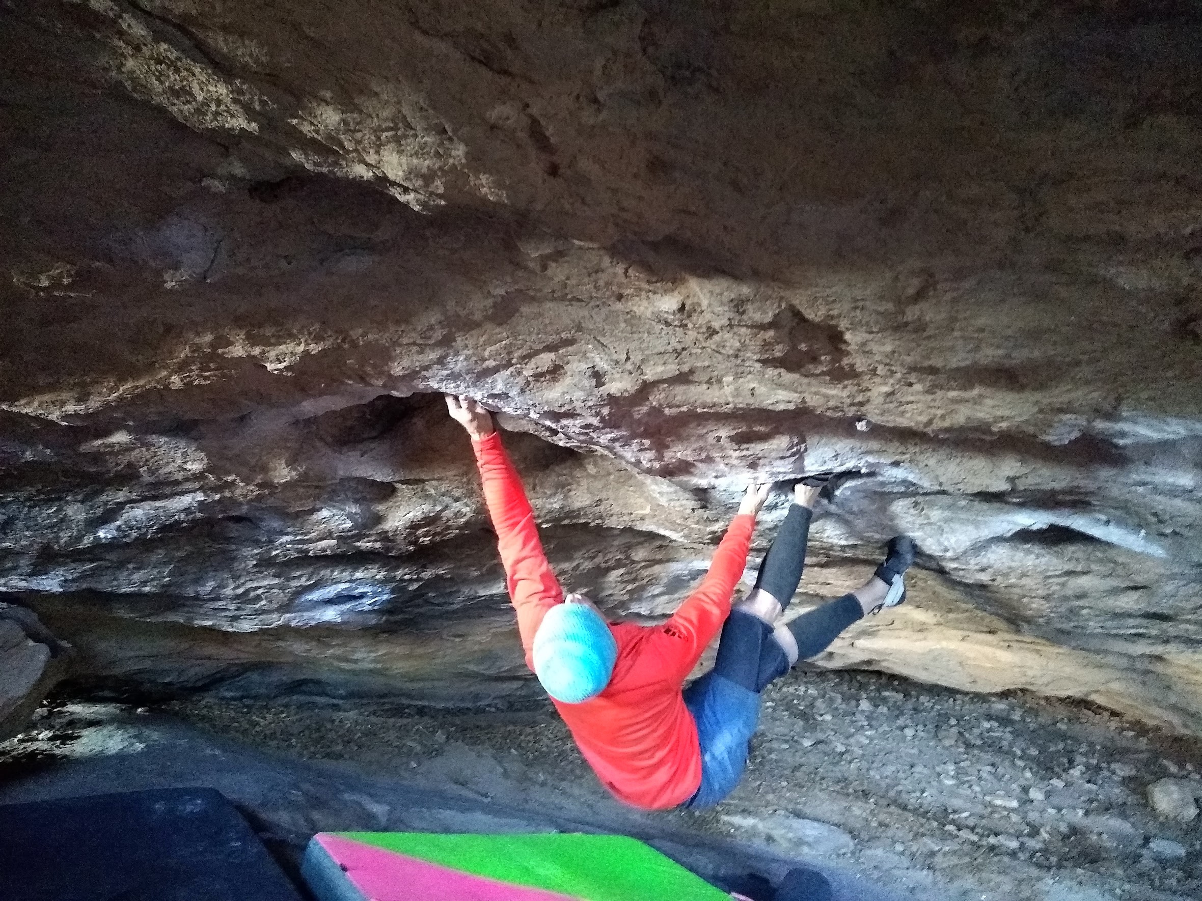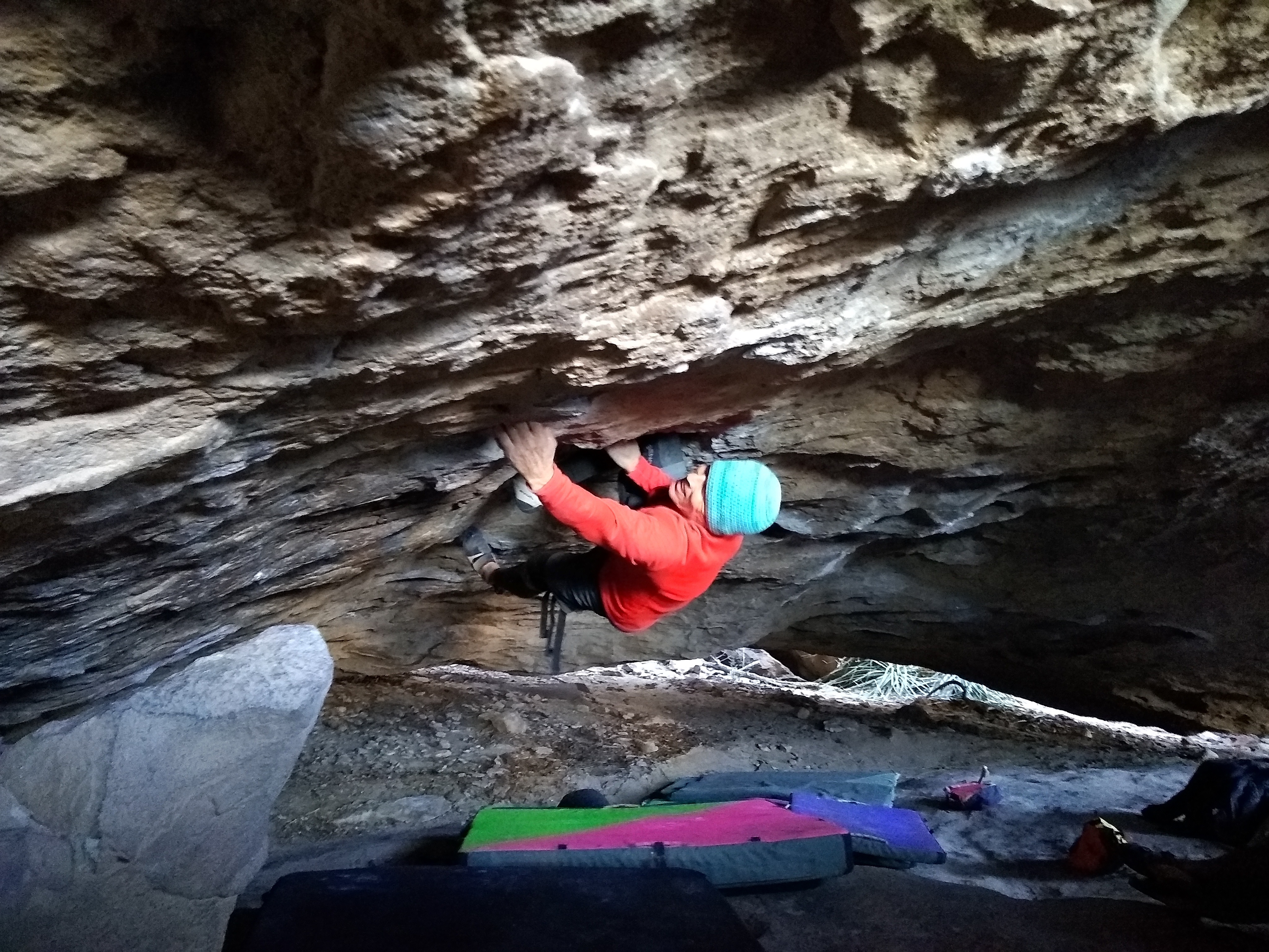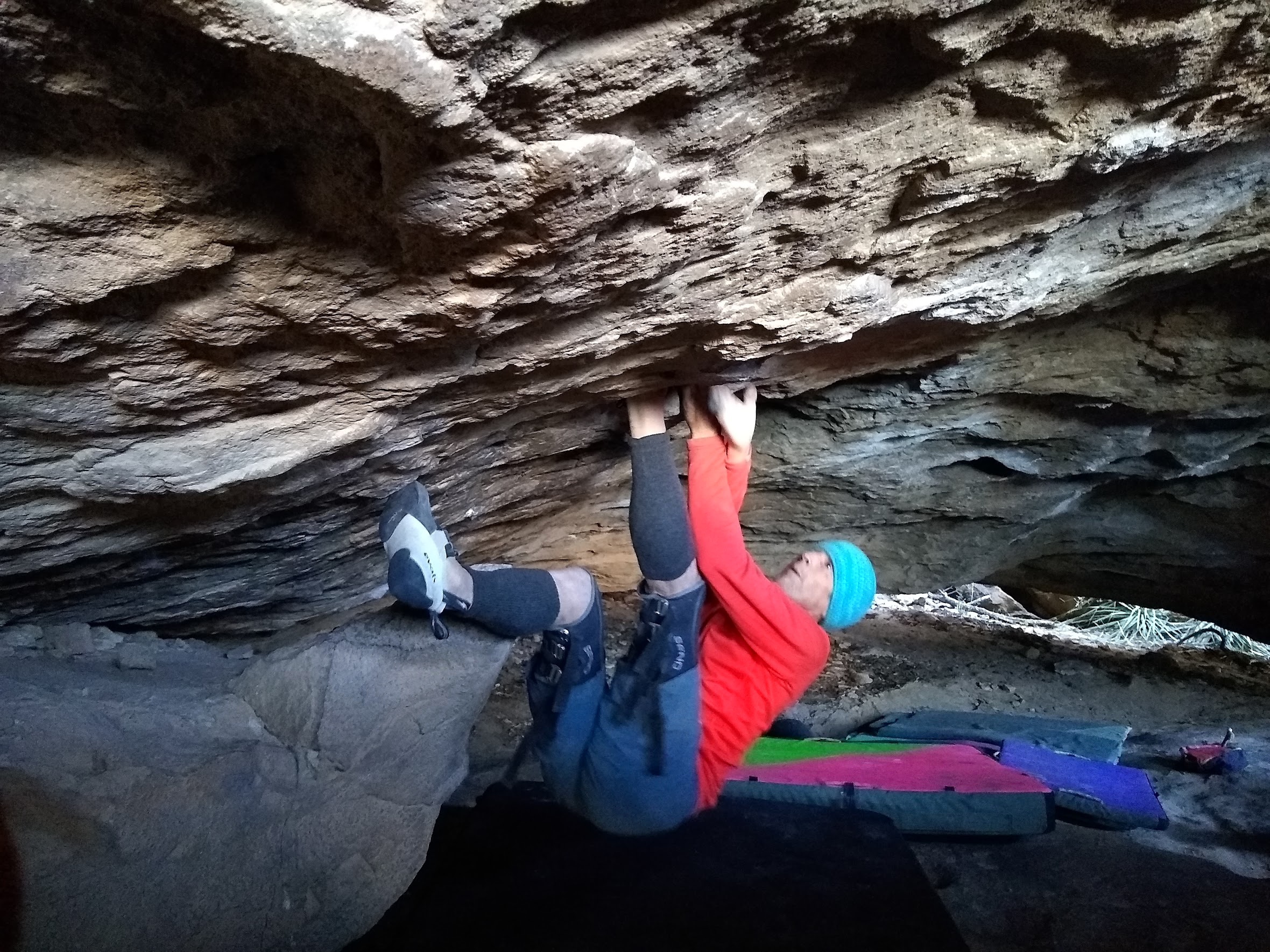 Admittedly, despite my propensity for denial, my biggest physical limitation relates to declining vision. I don’t get along well with glasses or contact lenses. I’ve tried both, and neither of them liked me. If you see giant, often double, tick marks on routes I’m working, I apologize. I typically brush them off once I’ve developed the kinesthetic sense of proper foot/hand positions, combined with learned autonomous movement. However, it might be a few months before thorough tic mark removal due to that memory thing previously mentioned.