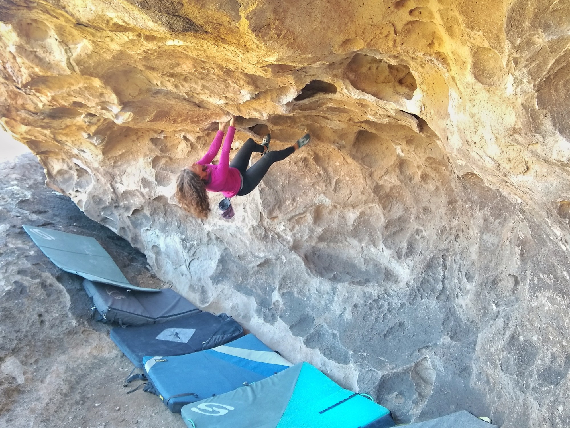 By late September, Charlie was recovering well and we were back in the cave. While he focused on recovery and regaining fitness, I finally sent my “mini-proj,” acutely aware that it took a very long time. With that minor success, it felt like time to move on, and we both had the same thought: we are in dire need of power; we need to boulder. Joe’s Valley is a place we’d visited before that was on our list for a longer stay. So that’s where we went, and it was great, until it started raining and threatened to snow for an entire week. Under normal circumstances, we’d be projecting routes and sit out bad conditions with the long view in mind, but, since we categorize bouldering as training, we did something uncharacteristic. We moved. We migrated south, from Joe’s to Moe’s, where we spent the next 3 weeks.